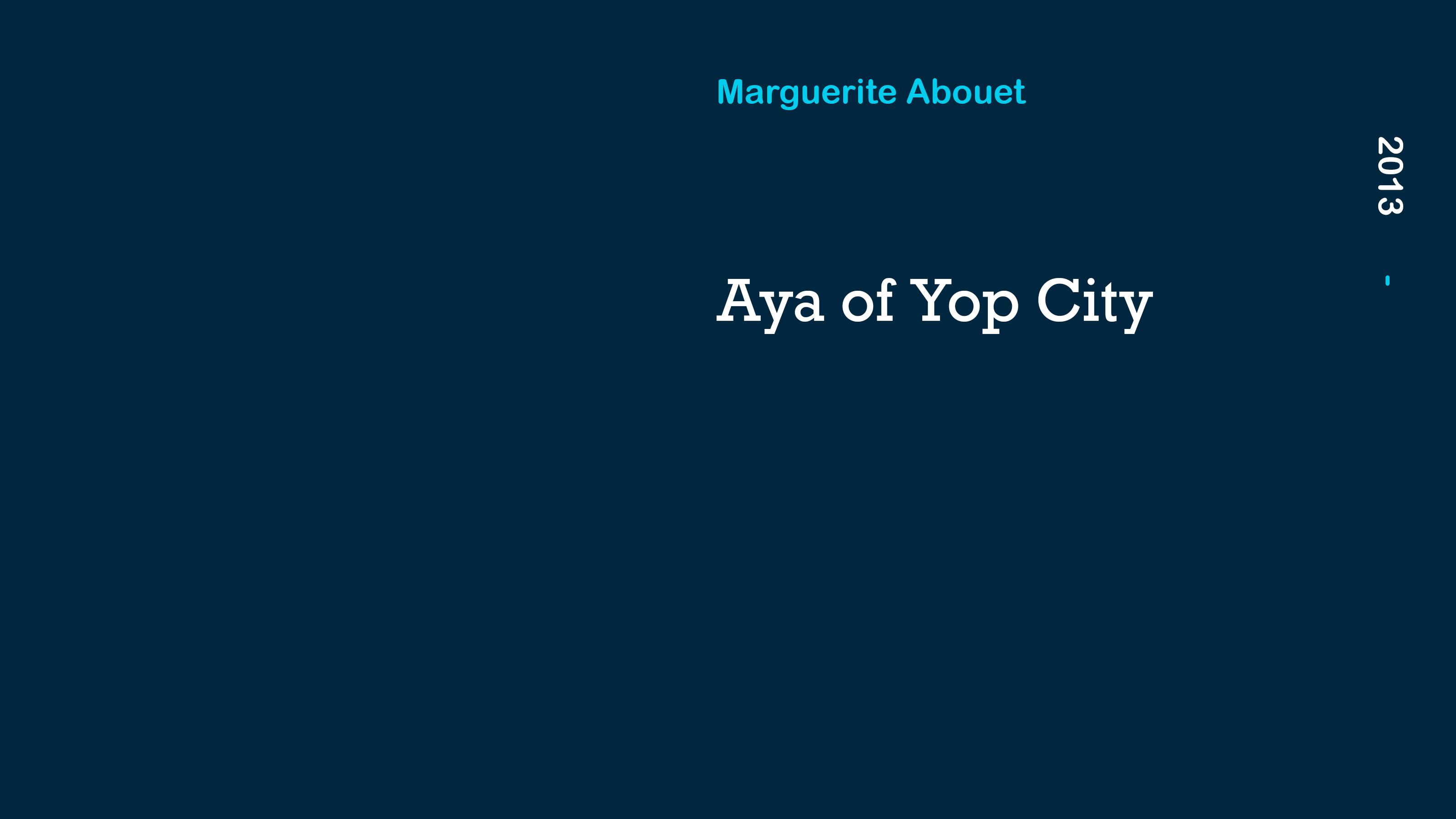 While Aya has dreams of becoming a doctor, her two best friends, Adjoua and Bintou, just like to hang out and spend their evenings dancing, drinking and flirting with boys. Their ambition is to follow Plan C: Combs, Clothes and Chasing Men! But big trouble comes to town when Adjoua realizes she’s pregnant, and the baby’s father is the spoiled son of one of the richest and most feared men in the whole country.