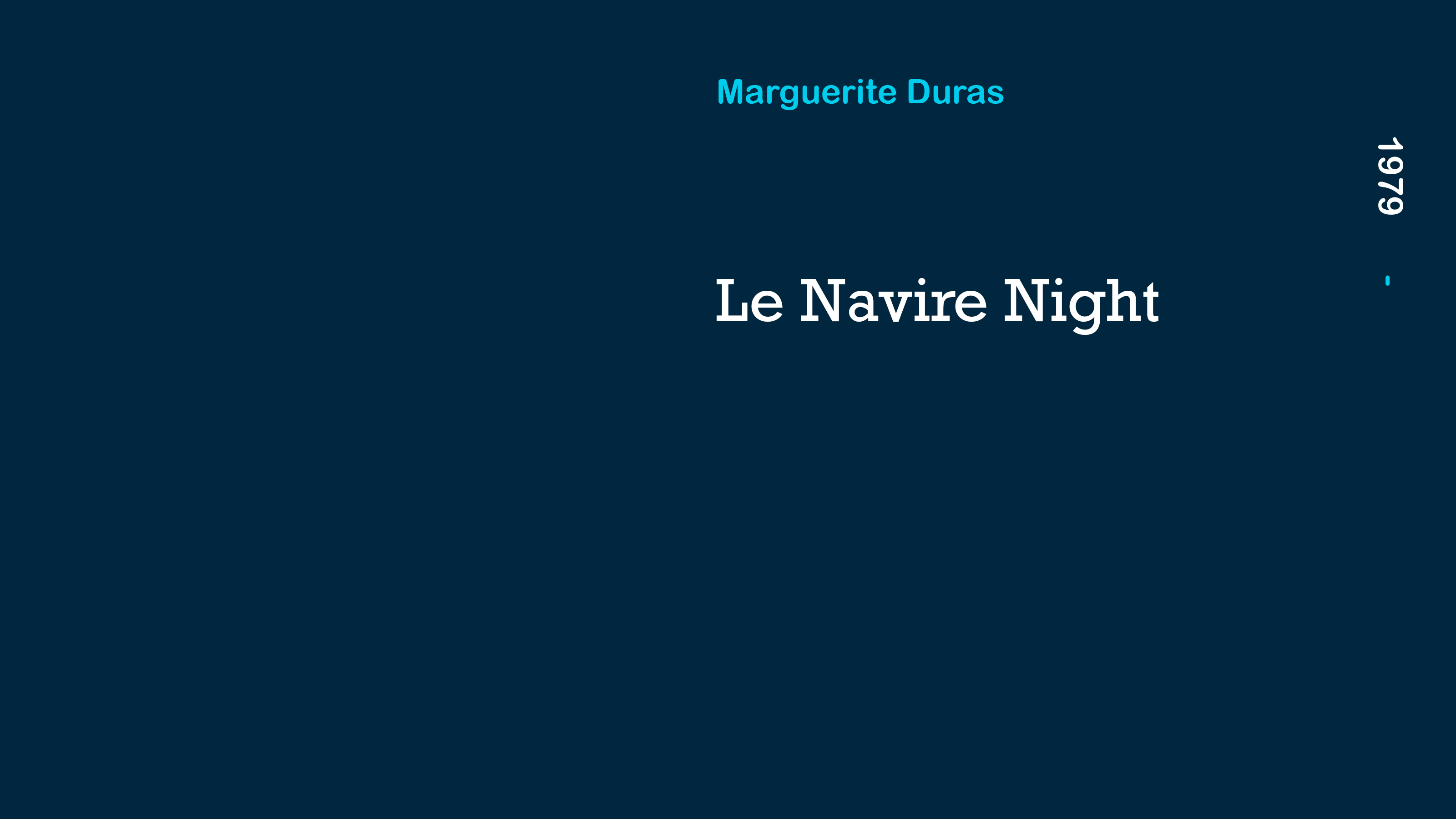 Le Navire Night is a story of love and desire sustained and nourished through sound waves. The film’s voice-over tells the story of a woman, terminally ill with leukemia, living in isolation at her wealthy father’s villa, and a man working night shifts at a telephone company. They have never met in person.
