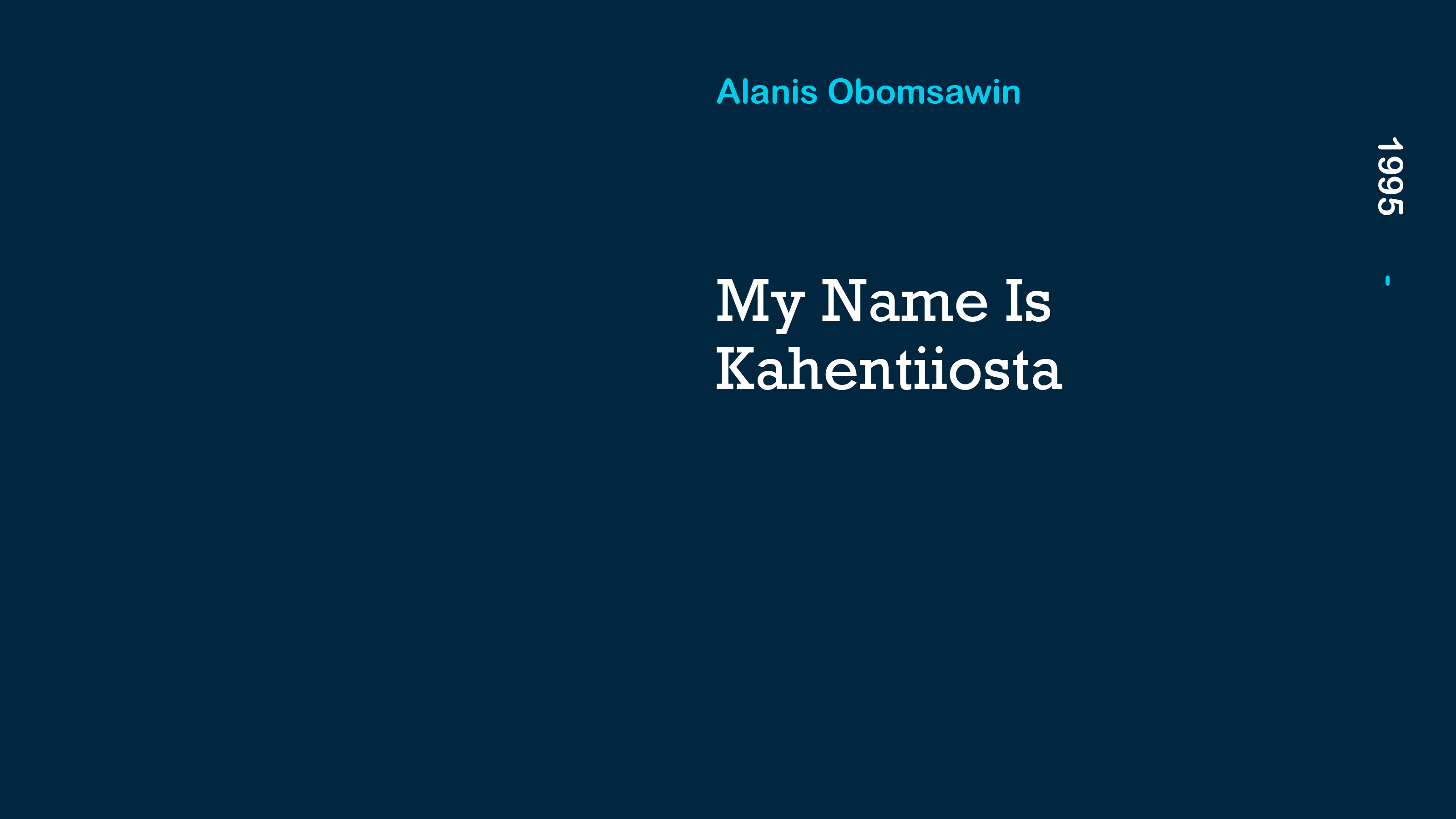 This documentary short by Alanis Obomsawin tells the story of Kahentiiosta, a young Kahnawake Mohawk woman arrested after the Oka Crisis’ 78-day armed standoff in 1990. She was detained 4 days longer than the other women. Her crime? The prosecutor representing the Quebec government did not accept her indigenous name.