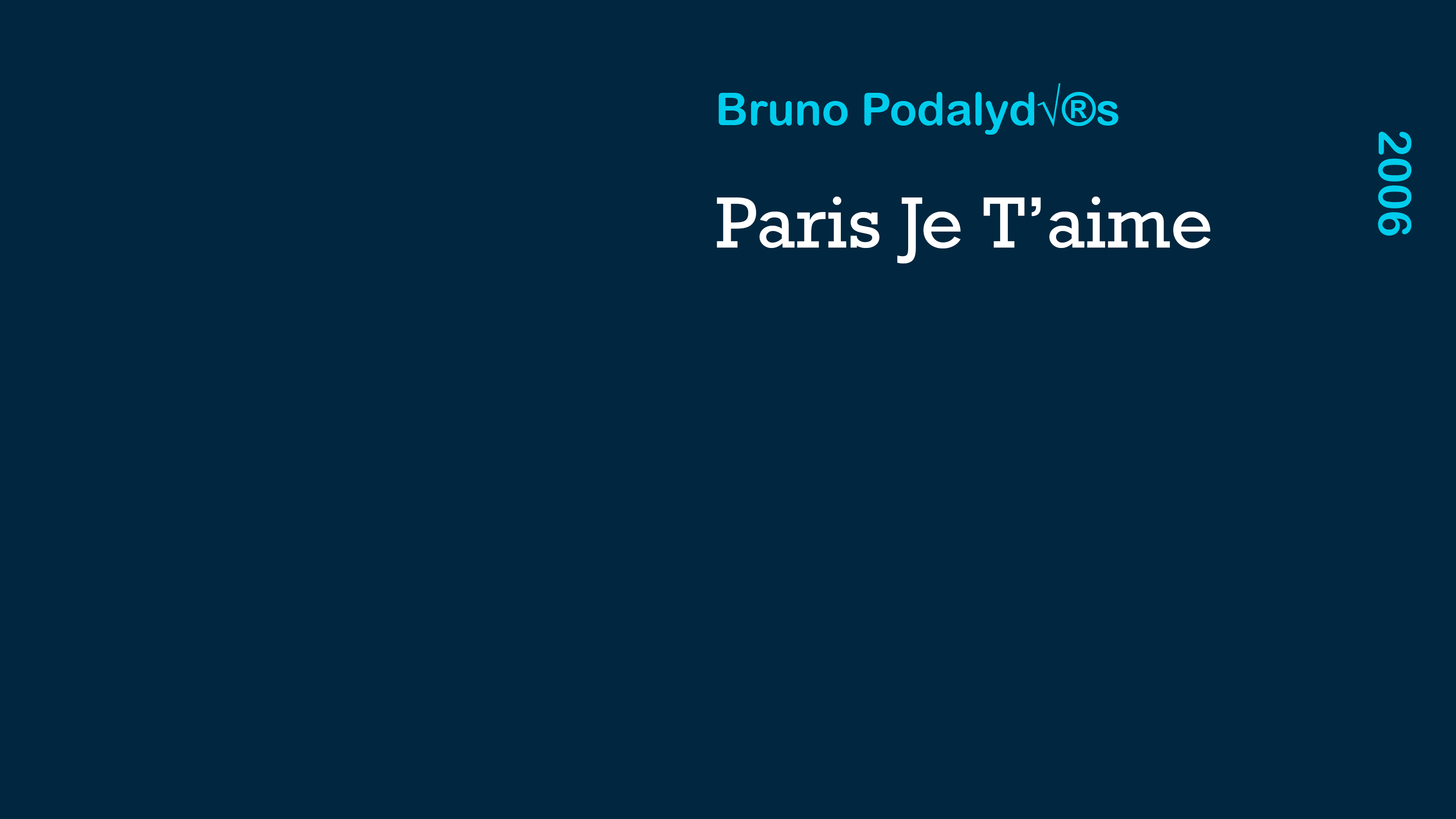 Paris, je t’aime is about the plurality of cinema in one mythic location: Paris, the City of Love. Twenty filmmakers have five minutes each; the audience must weave a single narrative out of twenty moments. The 20 moments are fused by transitional interstitial sequences and also via the introduction and epilogue. Each transition begins with the last shot of the previous film and ends with the first shot of the following film, extending the enchantment and the emotion of the previous segment, preparing the audience for a surprise, and providing a cohesive atmosphere. There’s a reappearing mysterious character who is a witness to the Parisian life. A common theme of Paris and love fuses all.
