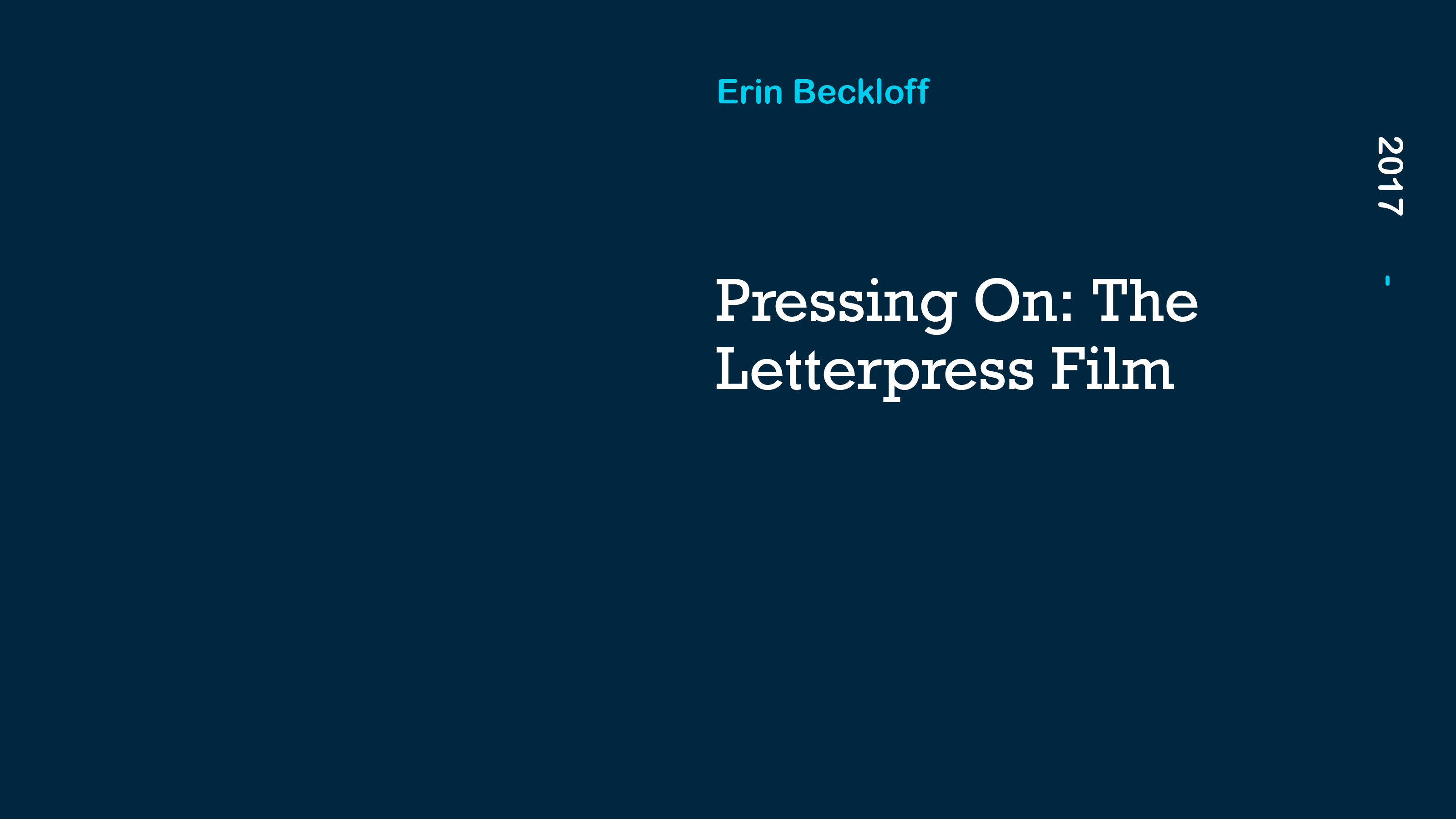 Why has letterpress printing survived? Irreplaceable knowledge of the historic craft is in danger of being lost as its caretakers age. Fascinating personalities intermix with wood, metal, and type as young printers save a traditional process in Pressing On, a 4K feature-length documentary exploring the remarkable community keeping letterpress alive.