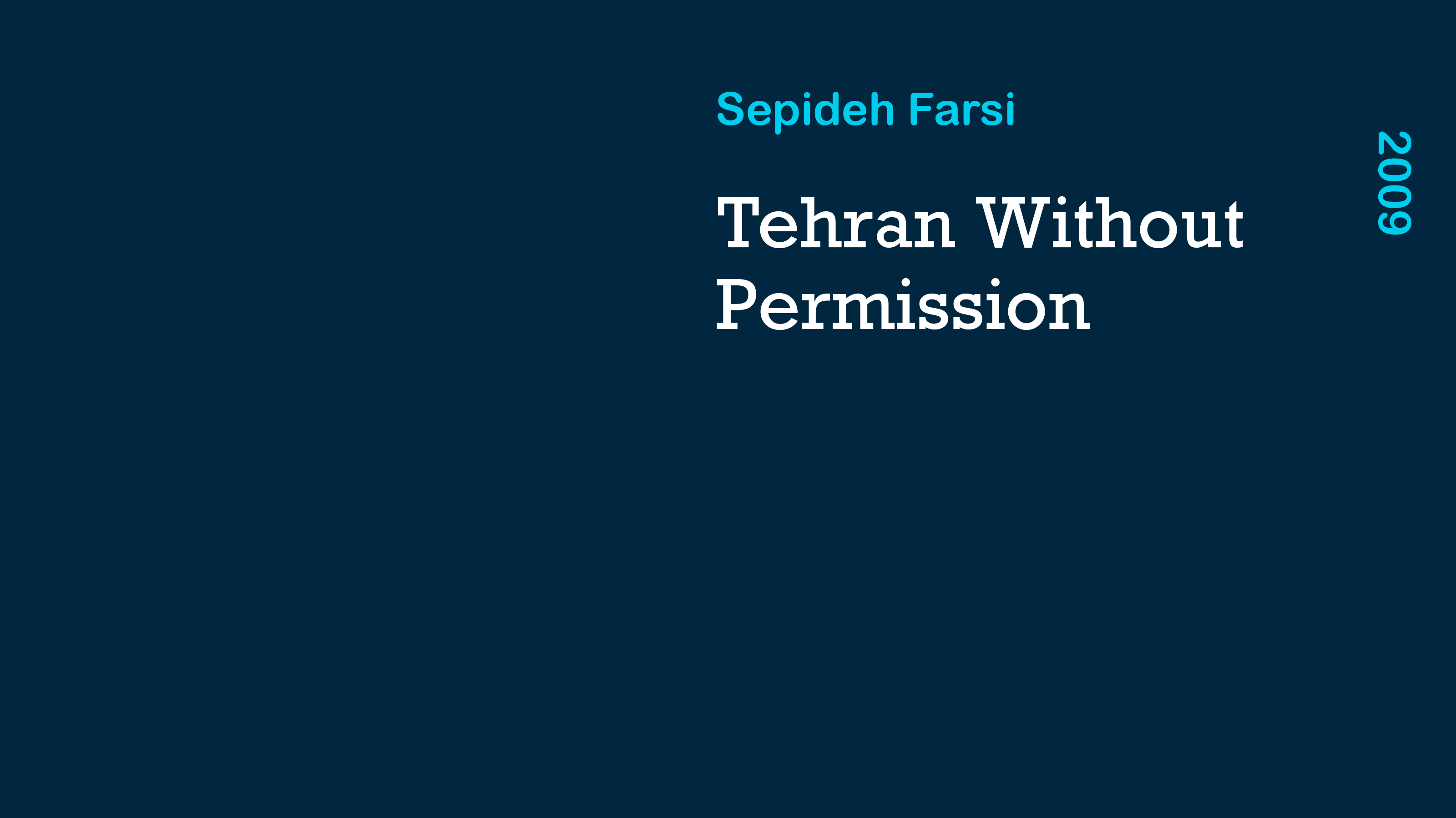 Sepideh Farsi left Tehran in her teens, yet has always remained under the spell of Iran’s lively capital. In ‘Tehran Without Permission’, Farsi creates a collage-style portrait of a city in flux. Via a mixture of characters and cityscapes, Farsi’s covert filming reveals a city beset with social and political tensions, yet held aloft by the indomitable spirit and character of its population.