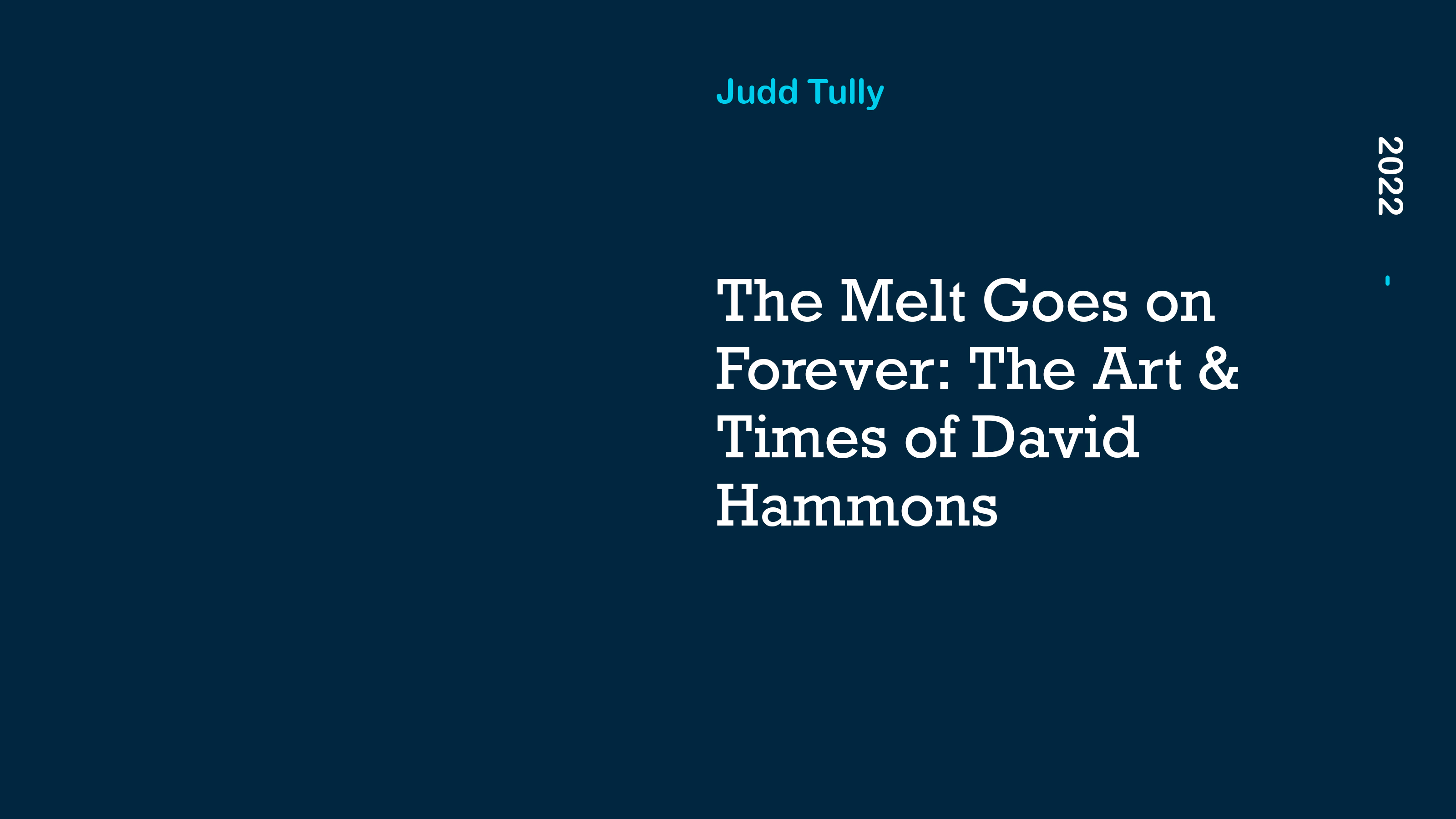 David Hammons’ singular career covers life in LA during a turbulent 1960s through to his prominence within the global art world today. Key to his work has been an analysis of African American society and its representation within US life. Featuring interviews with eminent artists, curators and critics; a wealth of archival footage; an evocative soundscape by Ramachandra Borcar that includes Marshall Allen, Idris Ackamoor and Shabaka Hutchings; and a reading by The Last Poets member and hip-hop forefather Umar Bin Hassan, The Melt Goes on Forever is a revelatory journey through six decades of art and culture.